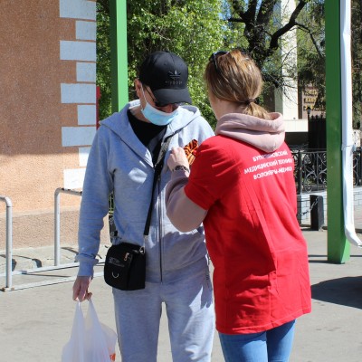 6 мая сотрудники Бутурлиновской районной библиотеки совместно со студентами местного отделения Всероссийского общественного движения добровольцев в сфере здравоохранения «Волонтеры-медики» провели акцию «Георгиевская ленточка». В акции приняли участие: Елизавета Макарова (11 гр.), Валерия Кузменко (26 гр.), Алена Бондарева (44 гр.), Татьяна Щеглова (41 гр.), Ирина Прокопенко (42 гр.), педагог-организатор Бутурлиновского медицинского техникума И.В. Беспалова и библиотекарь отдела обслуживания Бутурлиновской районной библиотеки И.А. Еферина. Георгиевская ленточка – это дань памяти тем, кто пал, спасая мир от фашизма. Это символ уважения к ветеранам и гордость за Великую победу. Волонтеры раздавали Георгиевские ленточки жителям города, рассказывали о ее правильном использовании и поздравляли с наступающим праздником Великой Победы.