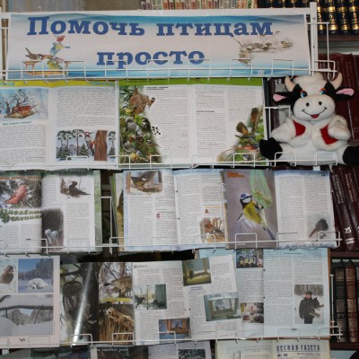 В библиотеке начала свою работу книжная выставка –напоминание «Помочь птицам просто», которая познакомила наших читателей с многообразием птичьего мира. Картинки из книг и журналов помогли выбрать образец кормушки, дали советы, где развесить и чем наполнить кормушки.