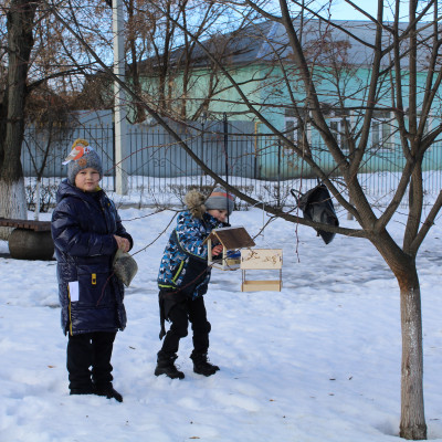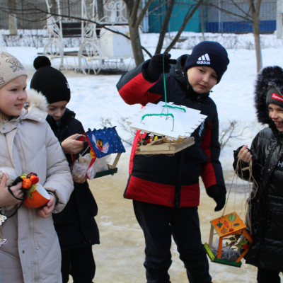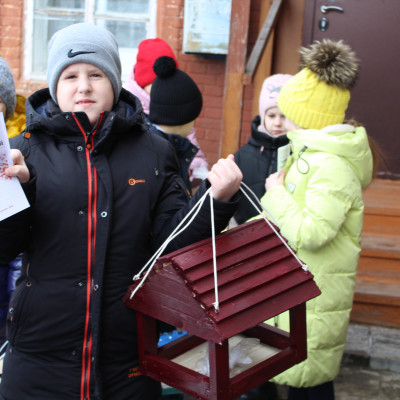 Дети познакомились с выставкой, подготовили и показали сценку, читали стихи о птицах. Библиотекари раздали памятки с рекомендацией, как правильно кормить птиц. Затем все вместе пошли в парк и повесили кормушки с кормом.