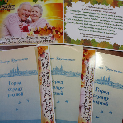 1 октября в День пожилого человека в районной библиотеке состоялось поздравление читателей старшего возраста как дань внимания пожилым людям, уважения к их возрасту. Всем пожилым читателям, которые в этот день пришли в библиотеку, были подарены книги и поздравительные открытки, подготовленные библиотекарями. Слова признательности и благодарности в этот день сотрудники библиотеки адресовали тем, чей возраст заслуживает глубочайшего уважения, и кто на протяжении многих лет является постоянным и активным читателем библиотеки.