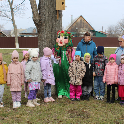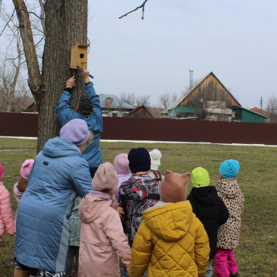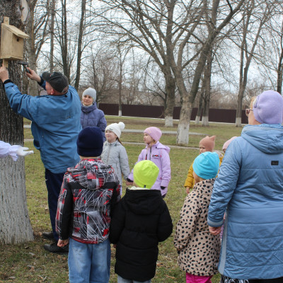 Ребята подготовили сценку «Вестники весны», прослушали беседу, отгадали загадки. Работники парка помогли развесить скворечники.