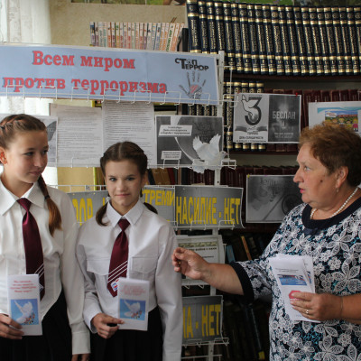 В библиотеке функционировала книжная выставка, где читатели знакомились с историей возникновения терроризма, информацией о противодействии террористическим актам, о трагедии в Беслане, а также о мерах безопасности в общественных местах.