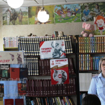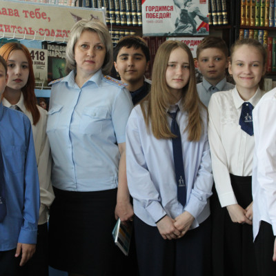 22 апреля в рамках празднования 80-летия Победы в Великой Отечественной войне 1941-1945 годов в Бутурлиновской детской библиотеке состоялась встреча учащихся 7 «б» класса ООШ № 1 (кл. руководитель Меняйленко Н.В) и инспектора ОПДИ ОУУП и ПДН ОМВД России по Бутурлиновскому району капитаном полиции Глотовой Ириной Николаевной.