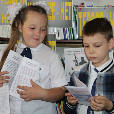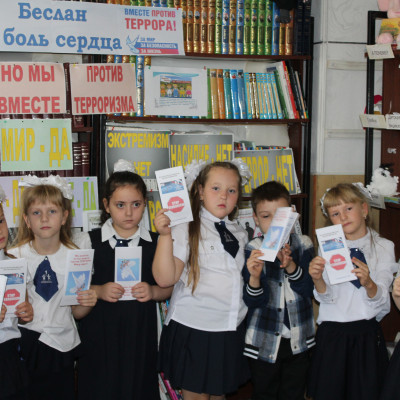 3 сентября районная детская библиотека приняла участие в проведении часа солидарности «Беслан – боль сердца», для учащихся 1 класса Бутурлиновской ООШ№1 (учитель Голубенко Т.М.) в рамках Дня солидарности в борьбе с терроризмом.