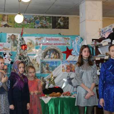 8 января в детской библиотеке собрались читатели и гости, чтобы отметить праздник Рождества Христова. У сияющей рождественской елки встретились воспитанники воскресной школы «Покров» (руководитель Пулина Е.С.), детский образцовый фольклорный ансамбль «Тараторка» (руководитель Макаревич О.А.) и читатели библиотеки. Вспомнили традиции празднования Рождества, поиграли, посмотрели сценку «Рождественская встреча», которую исполнили воспитанники школы «Покров», спели песни, колядки. Все гости получили подарки.8 января в детской библиотеке собрались читатели и гости, чтобы отметить праздник Рождества Христова. У сияющей рождественской елки встретились воспитанники воскресной школы «Покров» (руководитель Пулина Е.С.), детский образцовый фольклорный ансамбль «Тараторка» (руководитель Макаревич О.А.) и читатели библиотеки. Вспомнили традиции празднования Рождества, поиграли, посмотрели сценку «Рождественская встреча», которую исполнили воспитанники школы «Покров», спели песни, колядки. Все гости получили подарки.