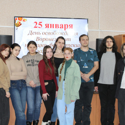 К 81-летию освобождения Воронежа от немецко-фашистских захватчиков в районной библиотеке им. Ю.Д. Гончарова для студентов 45 группы Бутурлиновского филиала «Губернского педагогического колледжа» (руководитель О.И. Ермакова) состоялся час истории, который познакомил студентов со страницами исторических событий освобождения города Воронежа 25 января 1943 года. Студентам рассказали о героическом подвиге защитников, павших в ратном бою за Воронеж, событиях оборонительного сражения за Воронеж, ставшего важной вехой в истории Воронежского края в годы Великой Отечественной войны 1941-1945 г.г.