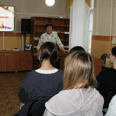 В рамках Года защитника Отечества в Бутурлиновской районной библиотеке для студентов 15 группы Губернского педагогического колледжа (преподаватель В.М. Трубицына) состоялось мероприятие, посвященное освобождению Воронежа от немецко-фашистских захватчиков 25 января 1943 года.