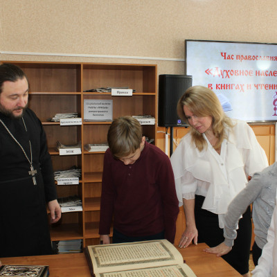 Накануне Дня православной книги в районной библиотеке для учеников Бутурлиновской ООШ № 7 был проведён час православия «Духовное наследие в книгах и чтении». Мероприятие открыл иерей Михаил Макаров, настоятель храма Димитрия Ростовского, он рассказал о значении праздника, о русской классике и современной литературе. Главная задача каждого мыслящего читателя, отметил он: отобрать для себя книги полезные, которые помогали бы формировать убеждения, укреплять нравственное начало, те книги, которые учат милосердию, состраданию.