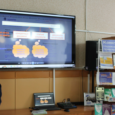 Библиотекарь рассказала о возможностях получения информации в справочной поисковой системе «Консультант Плюс», познакомила с методикой поиска, представила видеоролик.