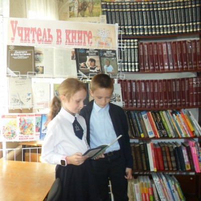 В библиотеке была организована книжная выставка «Учитель в школе», где ребята знакомились с книгами, рассказывающими о жизни учителей и учеников, об их взаимоотношениях, о различных методах воспитания. Школьникам были представлены художественные произведения современных и советских авторов о школе и учениках.