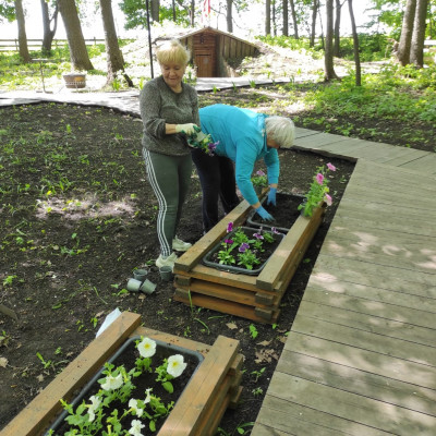 Сотрудники районной библиотеки поддержали областную природоохранную акцию «Воронежская область – зеленый регион». На экологической тропе в «Школе лесника» работники библиотеки высаживали цветы, что способствует улучшению качества окружающей среды.