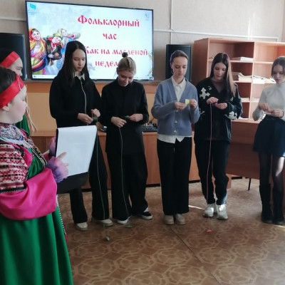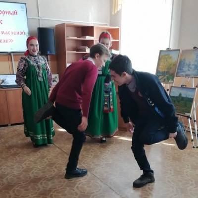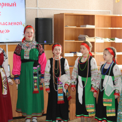 Образцовый детский фольклорный ансамбль «Тараторка» (руководитель – Ольга Макаревич, аккомпаниатор – Федор Кузминский) 11 марта провел в районной библиотеке игровую программу для учащихся Бутурлиновской школы № 7. Участники ансамбля показали, как на Руси праздновали и шутили на Масленицу, какие были игры и забавы, познакомили с историей и традициями празднования Масленицы.