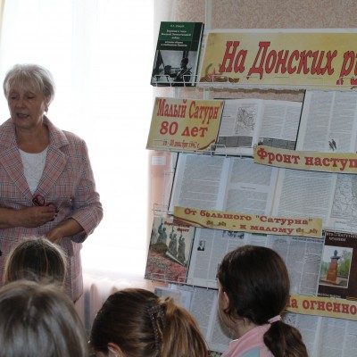 В рамках этой памятной даты в читальном зале библиотекари познакомили учащихся с выставкой-событием «На Донских рубежах». Пользователи познакомились с книгами и периодическими издания, где более подробно рассказывается об этом историческом событии ВО войны 1941-1945 гг., об итогах этой операции (освобождено более 200 поселковых пунктов и основная территория 5южных районов Воронежской области).