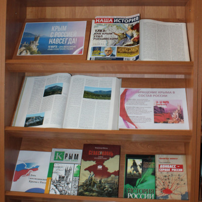18 марта 2025 года в нашей стране отмечают одиннадцатую годовщину воссоединения полуострова Крым с Россией. К этому событию в читальном зале библиотеки оформлена книжная выставка «Крым – это Россия».На выставке представлены художественные и публицистические книги, а также статьи из журналов, в которых можно найти много информации об исторических событиях, связанных с полуостровом Крым.
