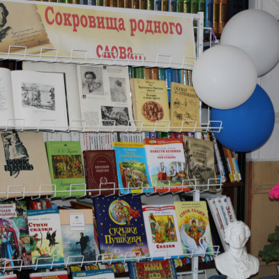 6 июня в день рождения А.С. Пушкина в детской библиотеке начала работу выставка книг «Сокровища родного языка».