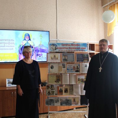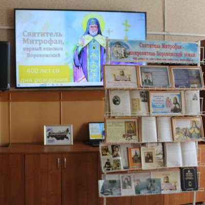 В этом году исполняется 400 лет со дня рождения Митрофана Воронежского. В память о первом епископе Воронежском, в Бутурлиновской районной библиотеке состоялось открытие книжной выставки «Святитель Митрофан – покровитель Воронежской земли», на котором присутствовал иерей Геннадий Лимонов - клирик Спасо-Преображенского собора г. Бутурлиновка.
