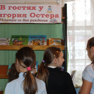 23 ноября в Бутурлиновской детской библиотеке начала свою работу выставка – поздравление «В гостях у Григория Остера», посвященная 75-летнему юбилею писателя. Юные посетители библиотеки знакомятся с биографией и творчеством писателя. Выставка радует читателей красочными изданиями Григория Остера «Вредные советы», «Папамамалогия», «38 попугаев», «Петька - микроб» и др.