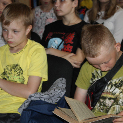 7 июня детскую библиотеку посетили дети из пришкольного лагеря «Бригантина» (воспитатели О.А. Охрямкина, В.И. Хорольская).
