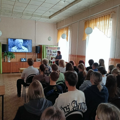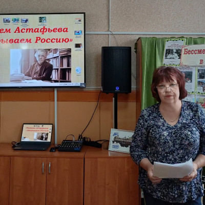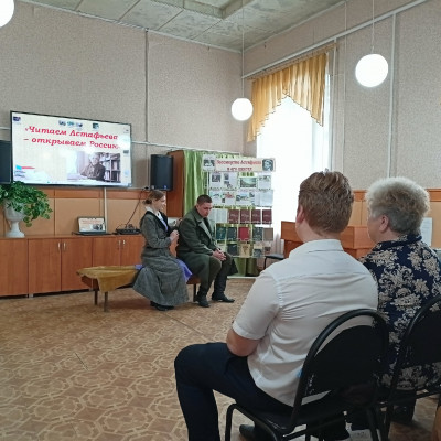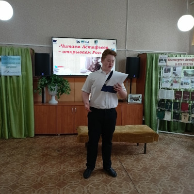 К 100-летию со дня рождения русского писателя В.П. Астафьева в библиотеке прошёл литературно-театрализованный вечер «Читаем Астафьева – открываем Россию». Зрителей познакомили с непростой биографией писателя, который рано остался без матери, беспризорничал, воевал в годы Великой Отечественной войны. Программа мероприятия включала в себя: показ отрывков из фильмов, сцена из пьесы «Прости меня» в исполнении молодёжного коллектива Народного театра драмы под руководством заслуженного работника культуры РФ Николая Дмитриевича Вакулы. Ярослав Дьяконский зачитал отрывки из произведений Виктора Астафьева «Царь-рыба» и «Фотография, на которой меня нет». К мероприятию была организована книжная выставка «Бессмертие Астафьева в его книгах».