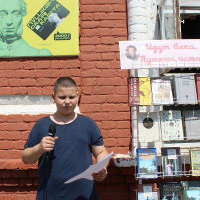 В рамках празднования Дня русского языка и Пушкинского дня России возле здания районной библиотеки состоялся поэтический марафон «Читая Пушкина». Ребята из пришкольного лагеря МКОУ «Бутурлиновская ООШ № 7», студенты Губернского педагогического колледжа, жители города прочли отрывки из любимых произведений великого поэта, познакомились с книгами выставки «Идут века, но Пушкин остаётся».