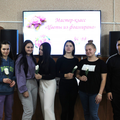 23 октября в Бутурлиновской районной библиотеке прошел мастер-класс по изготовлению цветов из фоамирана. Творческую мастерскую для студентов провела С.В. Якименко. Для посещения мероприятия обучающиеся воспользовались Пушкинской картой. В ходе мастер–класса участники познакомились с историей возникновения фоамирана, общими правилами работы, технологическим процессом изготовления цветов и в процессе практической деятельности освоили азы работы с этим материалом.