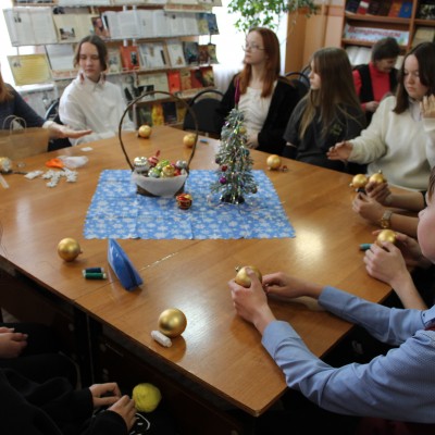 Учащиеся 8 класса Бутурлиновской школы № 7 посетили мастер-класс по декорированию елочного шара, который организовали сотрудники районной библиотеки по программе «Пушкинская карта». Провела мастер-класс педагог дополнительного образования Дома детского творчества О.В. Емцева.