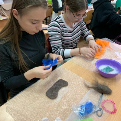 На мастер-классе участники своими руками сваляли из натуральной шерсти сувенирные валенки-шептуны в технике мокрого валяния. Шептуны являются оберегом, который приносит богатство и достаток. Если нашептать в валенки свои сокровенные желания, они непременно сбудутся.