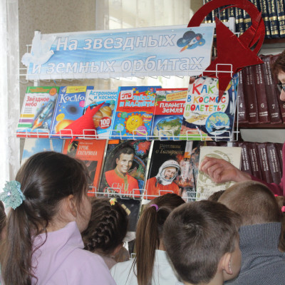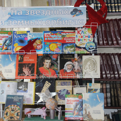 Настоящим подарком для юных любознательных читателей детской библиотеки стала книжная выставка «На звездных и земных орбитах». Она познакомила читателей с звездным небом и планетами, первым космонавтом, космическими полетами и МКС.