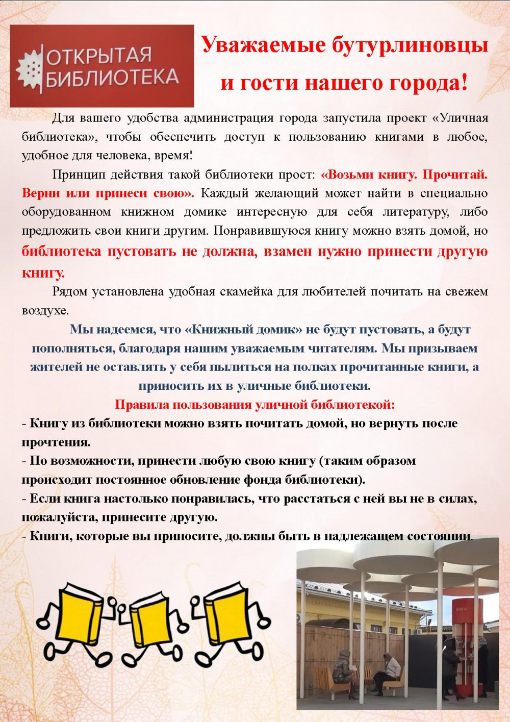 Правила пользования уличной библиотекой: