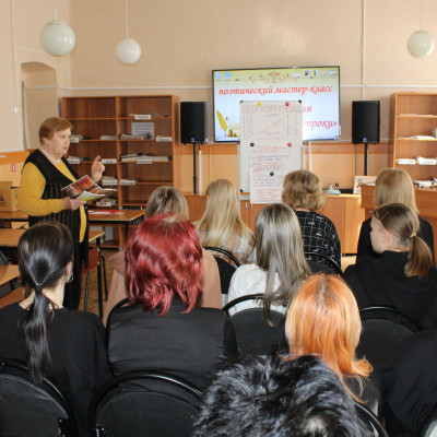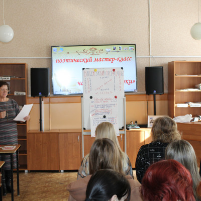 В Бутурлиновской районной библиотеке состоялось необычное мероприятие по художественному слову и поэтическому творчеству. Провела поэтический мастер-класс руководитель литературно–музыкального объединения «Радуга» и талантливая поэтесса Ольга Александровна Одинцова.