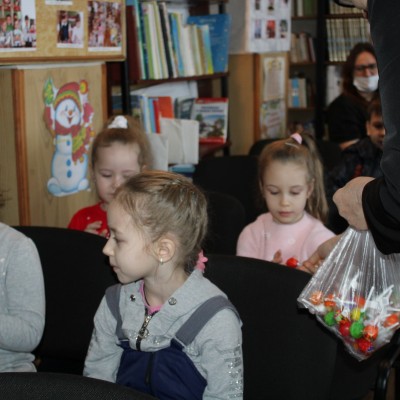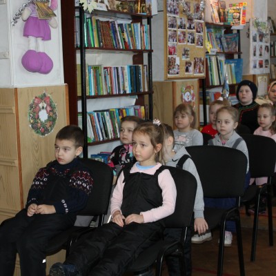 Детский образцовый фольклорный ансамбль «Тараторка», (руководитель Макаревич О.А.) порадовал юных читателей библиотеки – старшую группу МКДОУ детский сад №5 (воспитатель Пятаченко А.С.,) фольклорно – игровой программой, шуточными песнями, колядками.