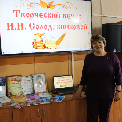 10 февраля в районной библиотеке организован творческий вечер И. Н. Солодовниковой.