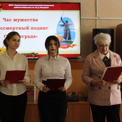 2 февраля в Бутурлиновской районной библиотеке прошел урок мужества, посвященный 80-летию начала Сталинградской стратегической наступательной операции. Во время мероприятия студенты Бутурлиновского медицинского колледжа (руководитель Беспалова И.В.) познакомились с важными историческими событиями Сталинградской битвы, с историей судеб и подвигов участников сражения за Сталинград, с хроникой событий одного из самых кровопролитных сражений, узнали о многодневной обороне дома Павлова, яростном сражении за Мамаев курган, которые навсегда вписаны в героическую летопись Великой Отечественной войны.