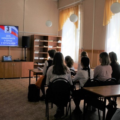 3 сентября в России отмечается День солидарности в борьбе с терроризмом. Накануне этого дня, 2 сентября сотрудники Бутурлиновской районной библиотеки провели видеочас «Памяти Беслана» для учащихся старших классов МКОУ Бутурлиновская ООШ №7. Главная задача мероприятия - формирование нравственных ценностей у школьников, представлений о добре и зле, сущности милосердия, побуждение к активным поступкам во имя добра.