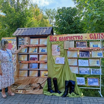 27 августа в Городком парке культуры и отдыха Бутурлиновской центральной библиотекой была подготовлена книжная выставка — инсталляция «Его величество – Сапог»», посвященная истокам сапожного ремесла в рамках событийного праздника — фестиваля творчества и ремесел «Праздник Сапога». В разделах был представлен краеведческий материал о развитии кожевенного производства и истории сапожного мастерства в Бутурлиновке. Гости и жители города увидели старинную кожаную обувь, изготовленную 100 лет назад. Это мужские и женские сапоги, туфли, сшитые бутурлиновскими сапожниками конца XIX — начала XX века.