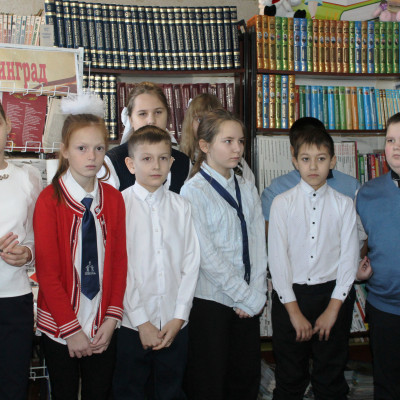 Первыми посетили выставку учащиеся 4 «а» и 7 классов Бутурлиновской школы № 1 (рук. М.Р. Болучевская, Е.В. Кравцова). Библиотекарь Руга Г.П. провела обзор выставки, дети познакомились с книгами, прочитали стихи о блокадном Ленинграде.