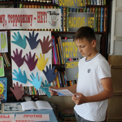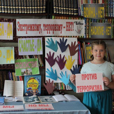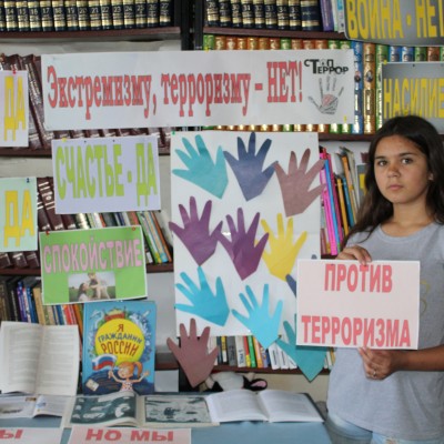 В нашей стране ежегодно отмечается День солидарности в борьбе с терроризмом. В Бутурлиновской детской библиотеке к этой дате действует выставка « Экстремизму, терроризму- НЕТ!» Содержание ее дает нашим читателям понять значение слова «терроризм», когда оно появилось и что означает. Плакаты, памятки знакомят с правилами безопасности и поведения в условиях террора.