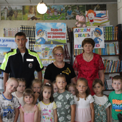6 августа в районной детской библиотеке встретились воспитанники детского сада №5 (воспитатели Романова Г.Н., Королева Е.Н., Бирюкова Н.Н.) и инспектор ГИБДД по Бутурлиновскому району И.В. Баскаков.